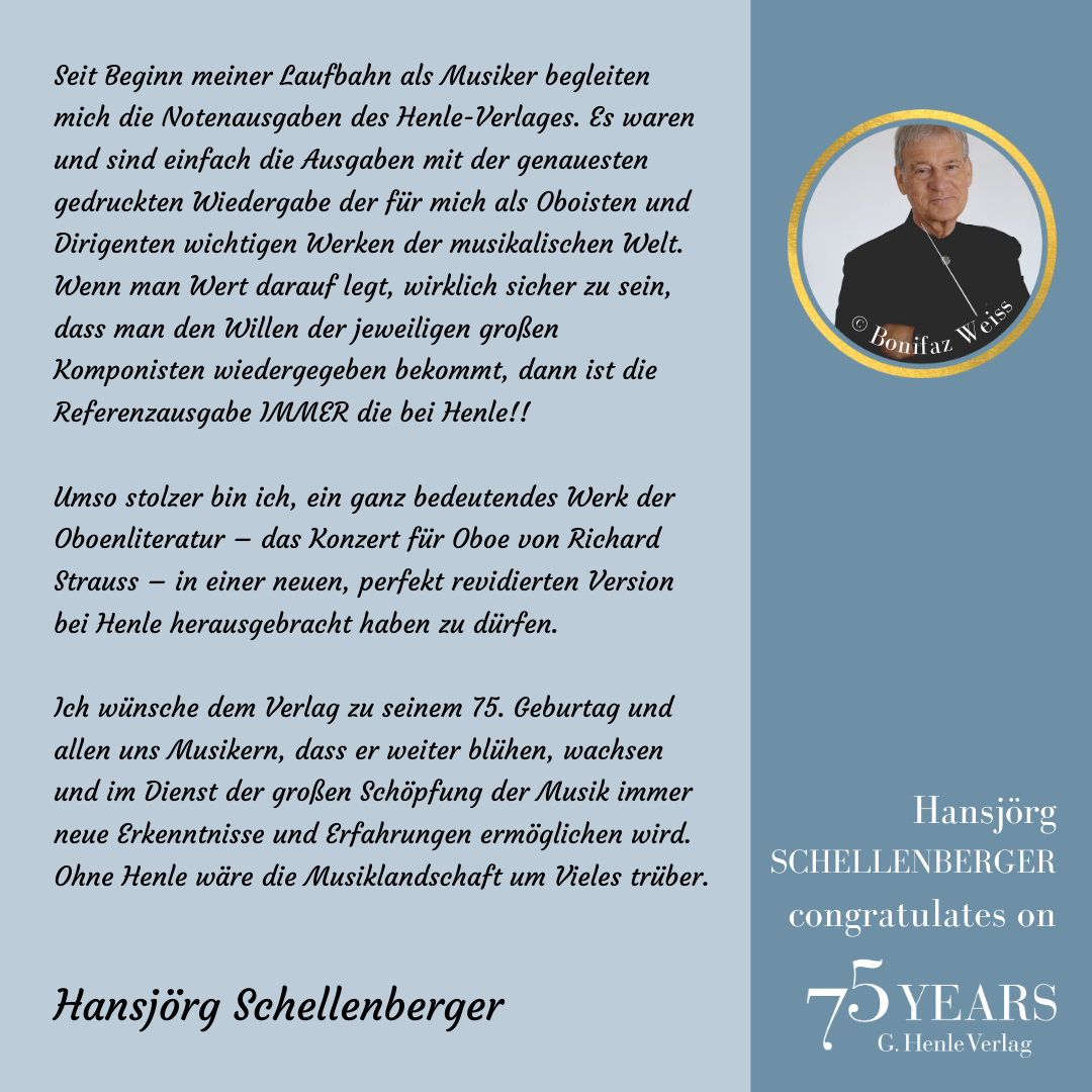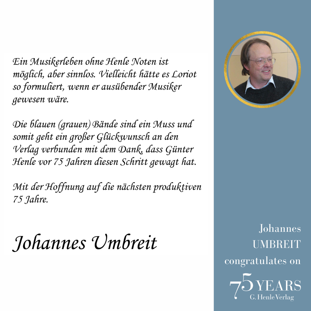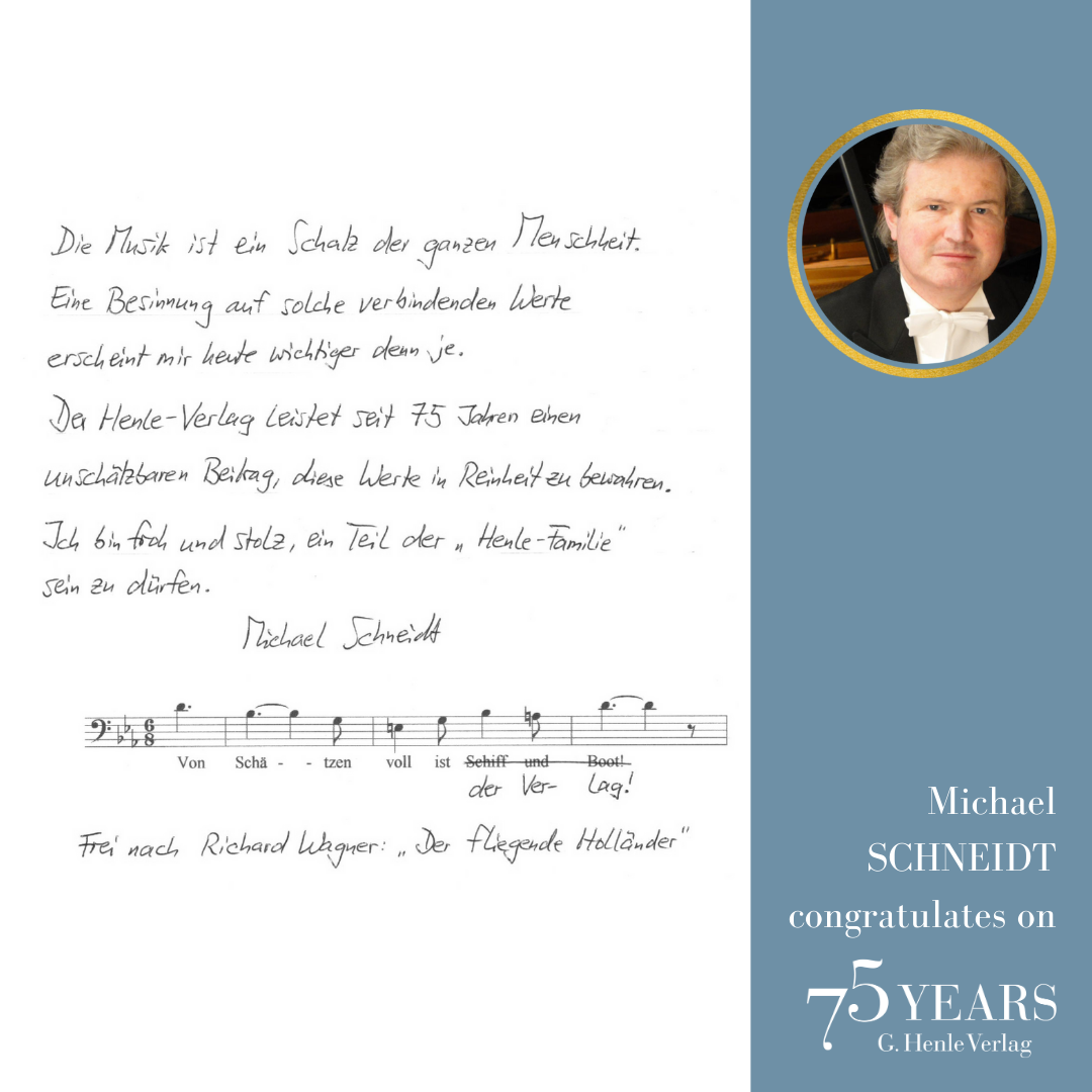 In October 1948, a difficult period, the music-loving industrialist Günter Henle founded his music publishing house. His passion was “Urtext”: correct, unadulterated and beautiful editions of great works of classical music. Today we can look back on a great success story: 75 years of “Finest Urtext Editions”. Thus throughout 2023 we will be celebrating Urtext and our special anniversary. The highlight will be a large gala concert with numerous internationally renowned artists in Munich’s Prinzregententheater at the beginning of November. Come and celebrate with us!