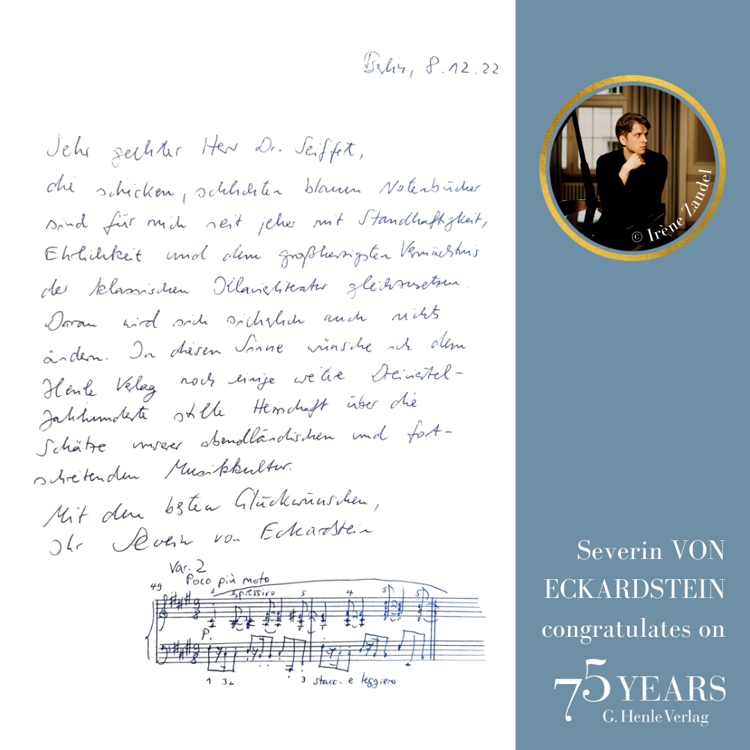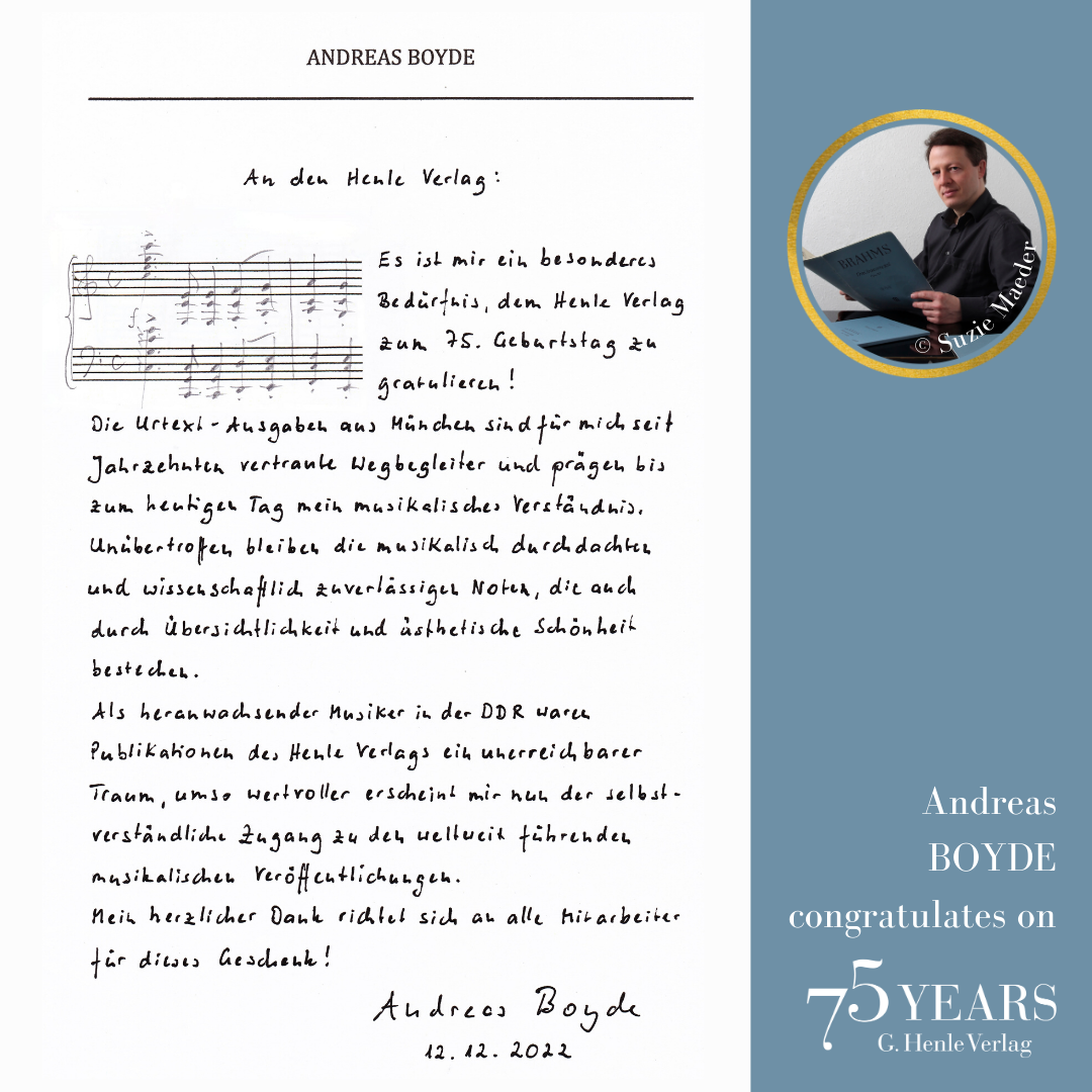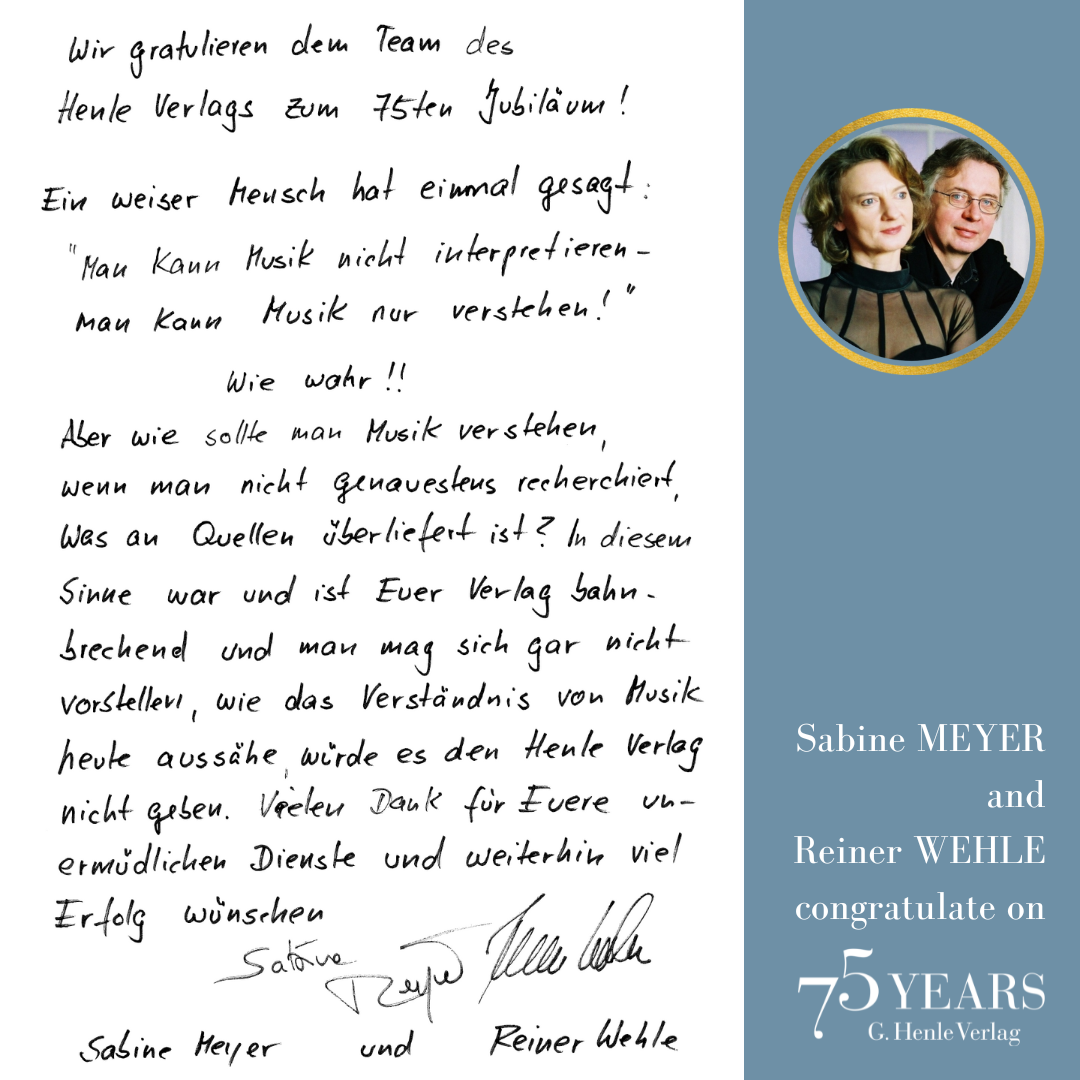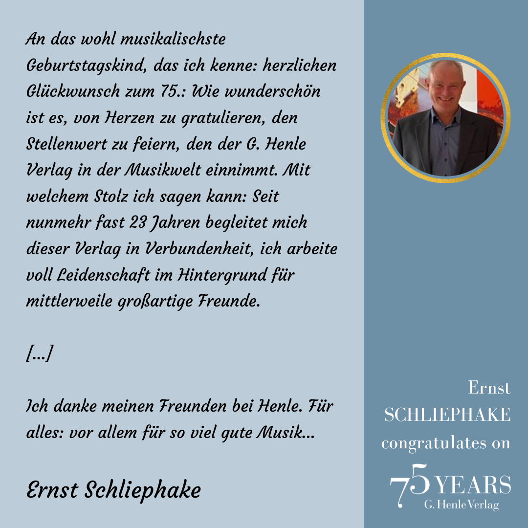 In October 1948, a difficult period, the music-loving industrialist Günter Henle founded his music publishing house. His passion was “Urtext”: correct, unadulterated and beautiful editions of great works of classical music. Today we can look back on a great success story: 75 years of “Finest Urtext Editions”. Thus throughout 2023 we will be celebrating Urtext and our special anniversary. The highlight will be a large gala concert with numerous internationally renowned artists in Munich’s Prinzregententheater at the beginning of November. Come and celebrate with us!