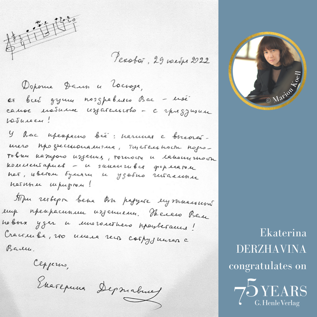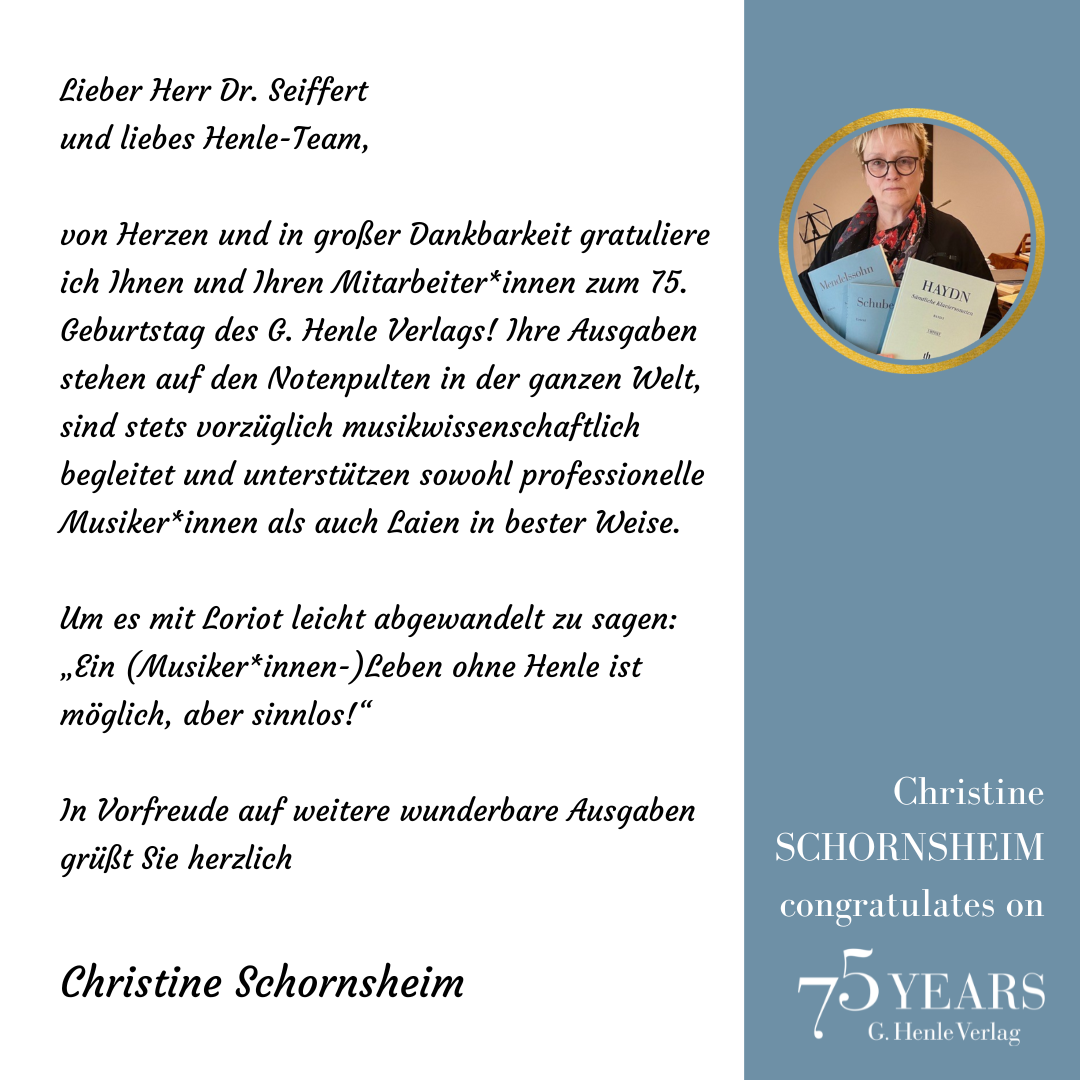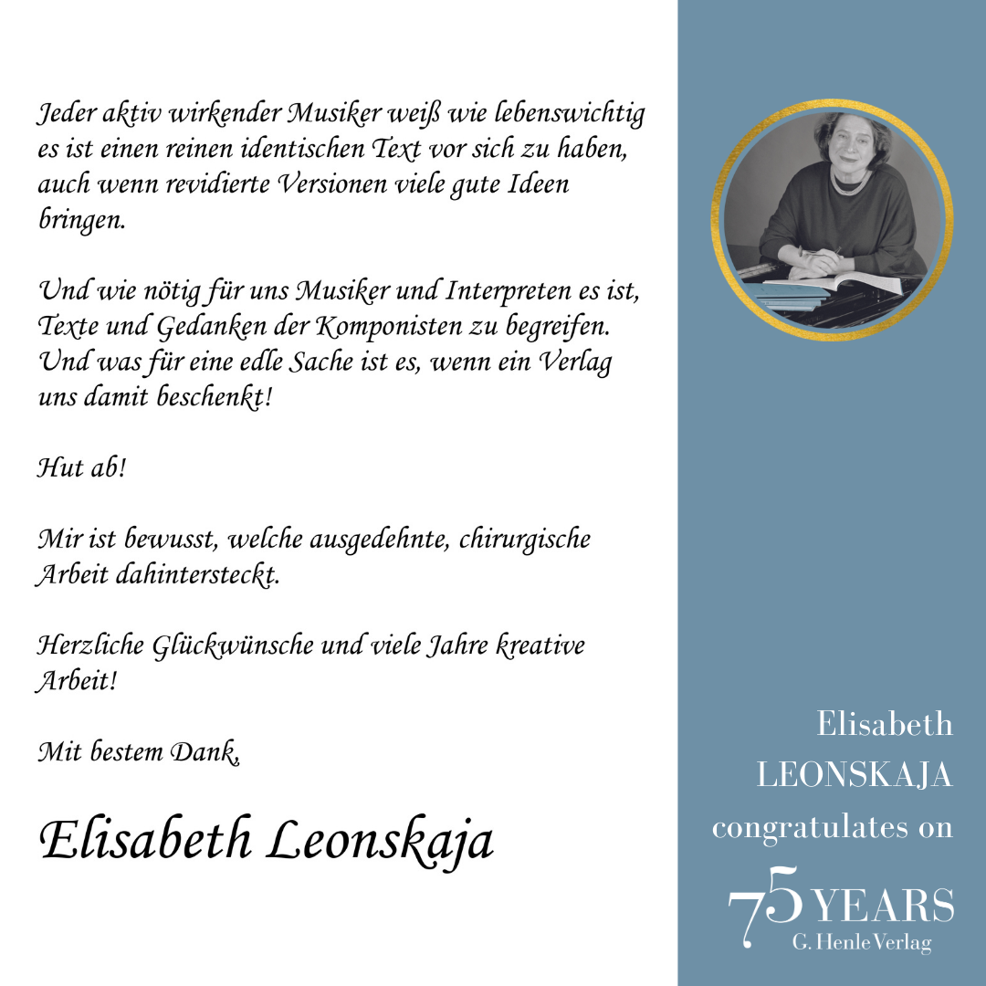 We used to look forward with eager excitement to music fairs in Frankfurt and Shanghai, and also smaller conferences in other locations. Now that some are not taking place at all or being postponed, we decided to celebrate the 75th anniversary of G. Henle Verlag with a virtual Open Day that gives us – and you – the opportunity to get together.