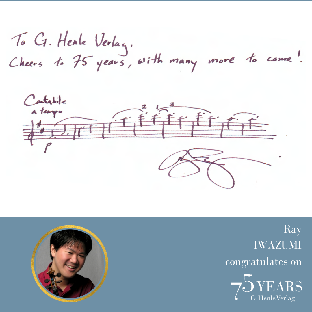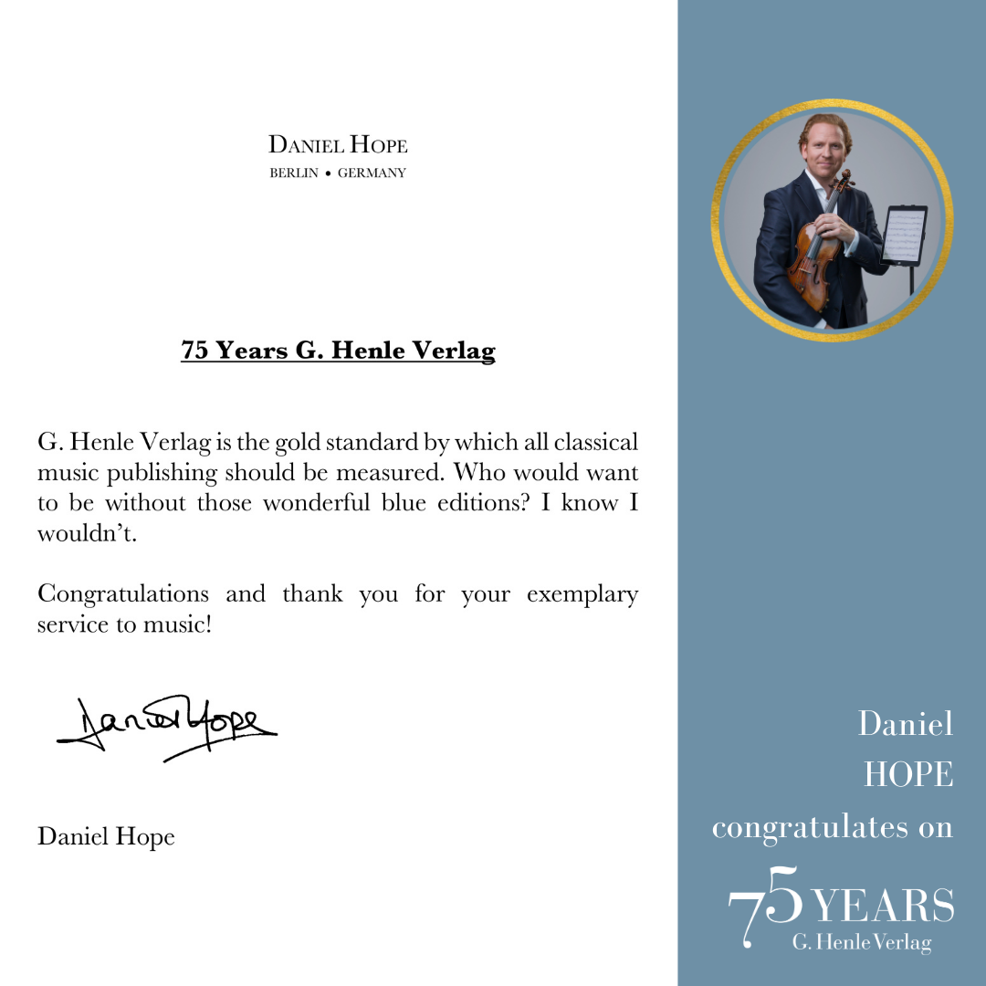 Frank Peter Zimmermann has a longstanding and close relationship with G. Henle Publishers. In the video, he is one of the first to congratulate us on our 75th anniversary! Listen to his thoughts on Urtext, fingerings and bowings, his favourite works and his very close ties to the Henle family: