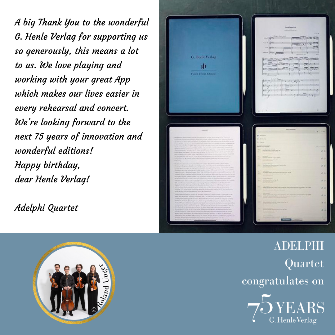 Launch of the Henle Library app for professional musicians, amateurs, students and teachers. The numerous fully digital possibilities of Henle sheet music extend far beyond those of printed music or a PDF. In October 2023, about 75,000 musicians around the world use the Henle Library app.